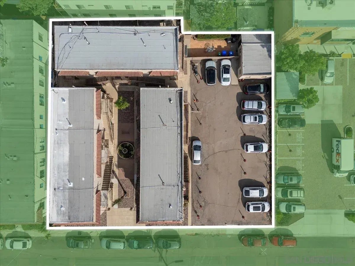 This 12-unit apartment offering presents a rare opportunity in the heart of Hillcrest with its unique two-parcel configuration totaling 13,715 square feet. One parcel is improved with 16 dedicated on-site parking spaces, an exceptional feature in this high-demand urban neighborhood, while the second parcel includes three separate four-plex buildings with classic frame and stucco construction. All twelve units are thoughtfully laid out as two-bedroom, one-bath apartments, with eight units at 748 square feet and four units at 682 square feet. This balanced unit mix, coupled with their generous sizes, positions the property as an attractive option for long-term renters seeking space, comfort, and walkable access to Hillcrest’s vibrant lifestyle. This asset is ideally suited for an investor looking to capitalize on immediate stability while unlocking future upside through renovation, repositioning, or even long-term redevelopment. The combination of rare on-site parking, efficient two-bedroom layouts, and the two-parcel configuration makes this offering a standout opportunity in San Diego’s multifamily market.