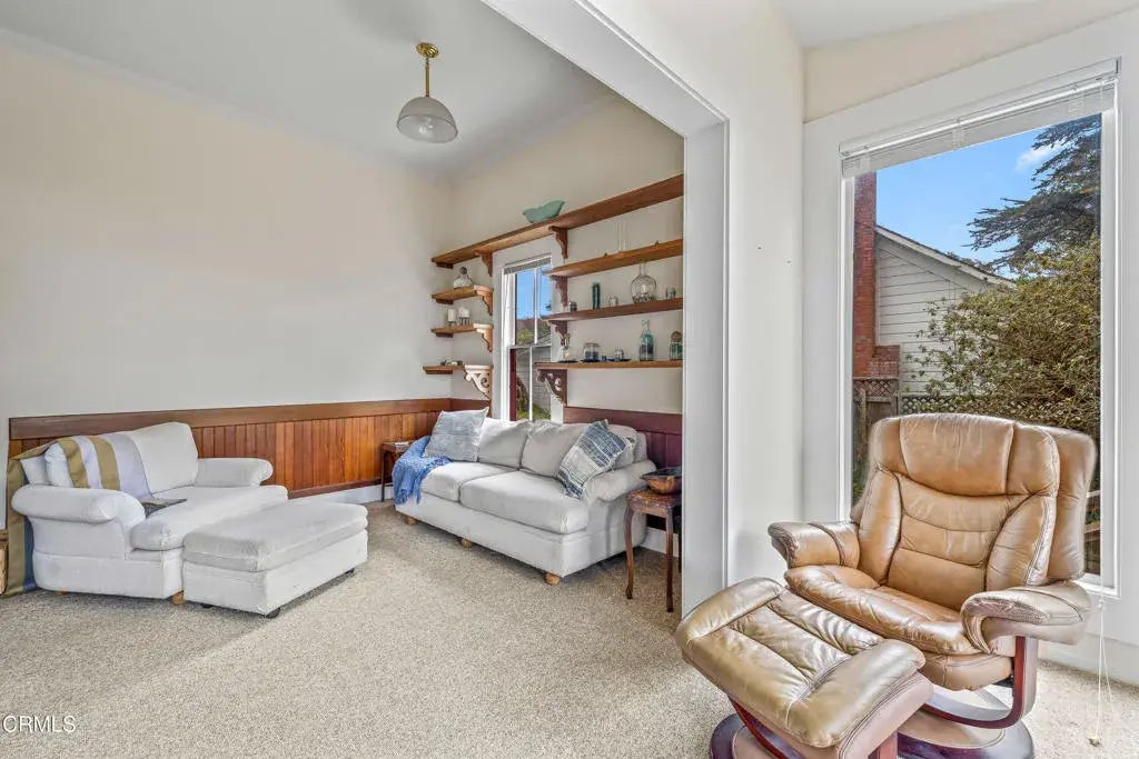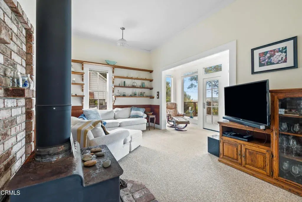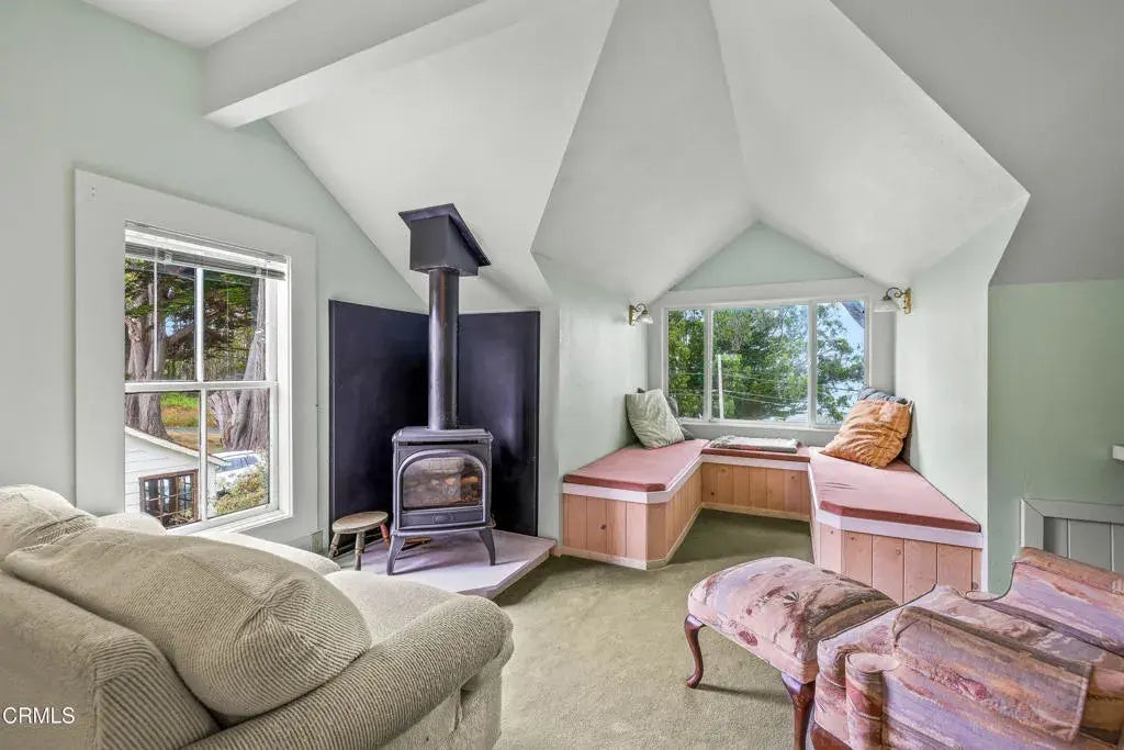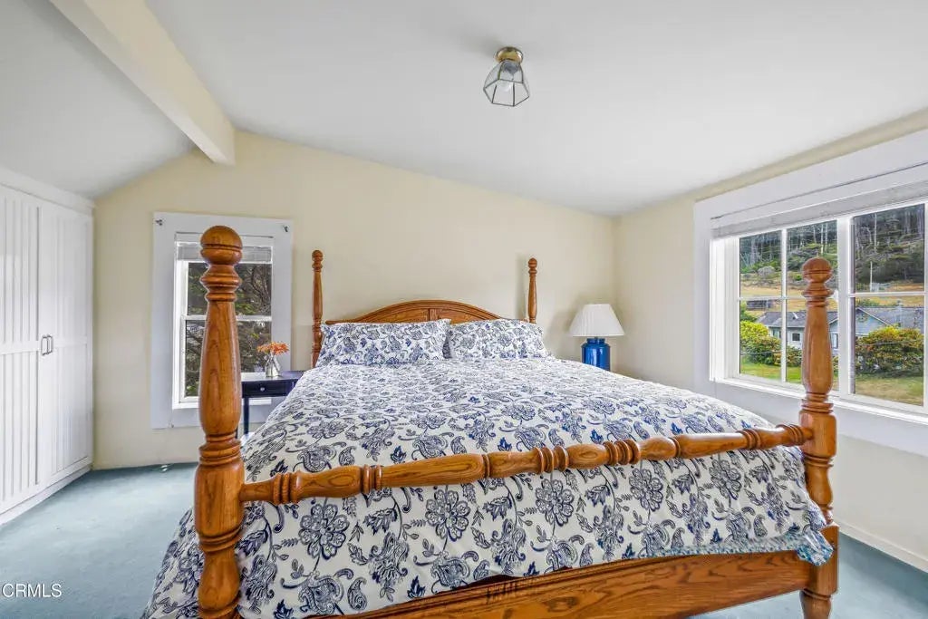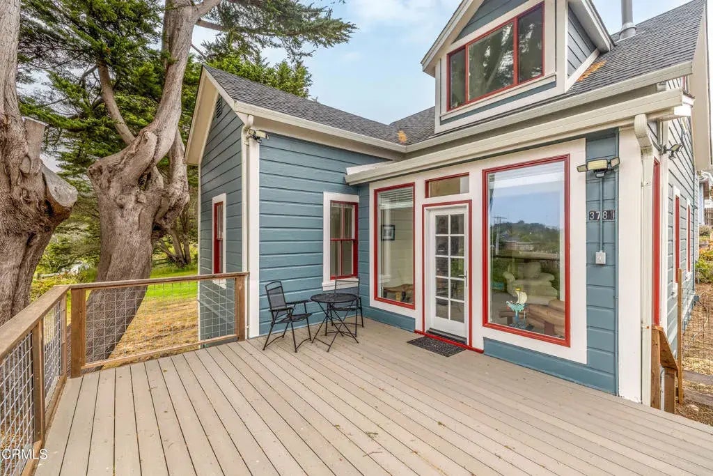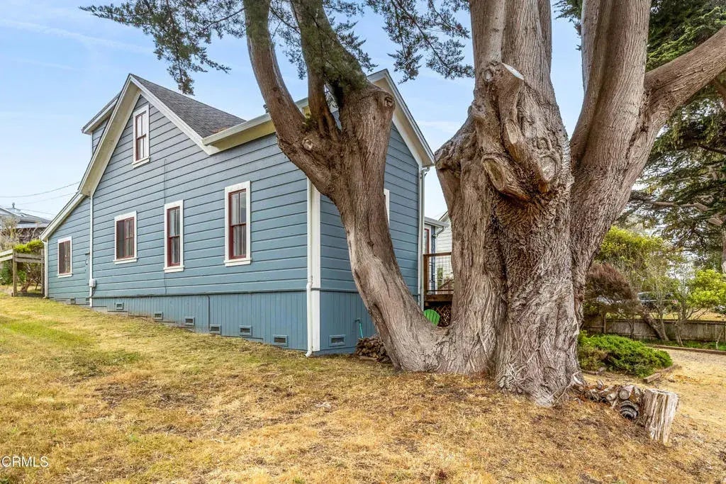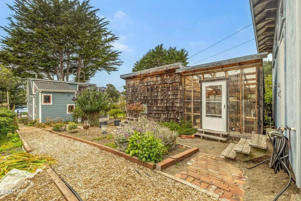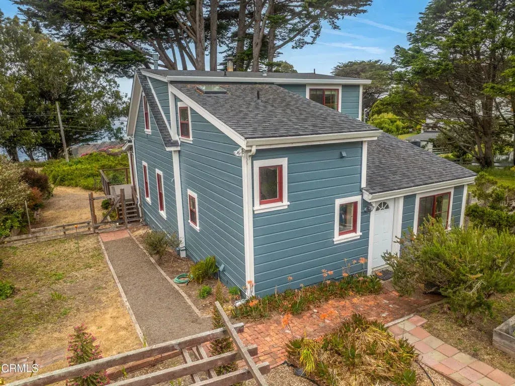 Quintessential Cape-style home with saltbox lines overlooking the Albion Cove and the dramatic Pacific Ocean. On entering the home, you will find open living and dining spaces with a wood-burning stove and airy vaulted ceilings. The kitchen is both spacious and functional with ample cabinetry and counter space. There are three bedrooms on the first floor, with one of the bedrooms offering flexible use as a den or office and a bath featuring a shower/tub combination and two sinks. The upstairs, with its separate entry, has been remodeled to provide a cozy living space with one bedroom and a bath containing a stall shower with beautiful cobalt blue tiling, and a great room complete with a free-standing fireplace, a charming nook, and a 3-sided window seat sporting tree-framed views of Albion River cove. At the back of the property, you will find raised flower beds, a green house, a workshop, and second utility shed. With its great curb appeal and friendly neighborhood vibe, this property is the perfect place to call home!