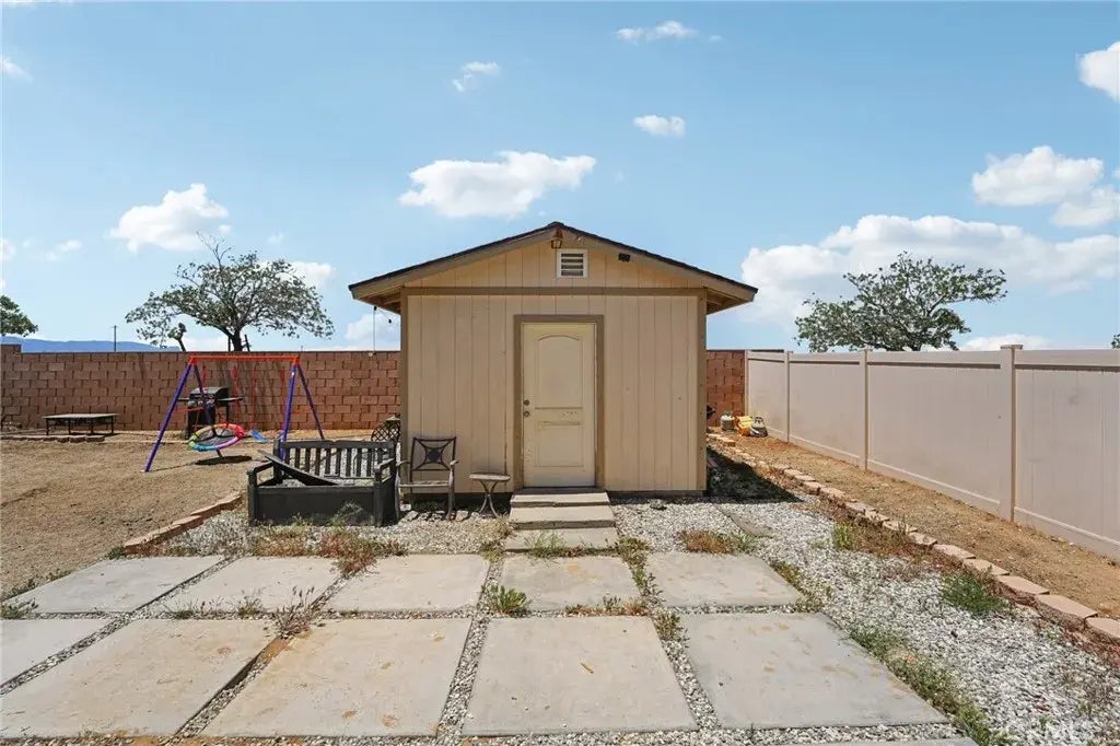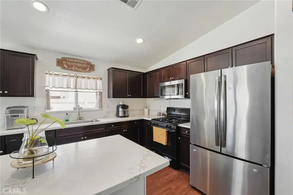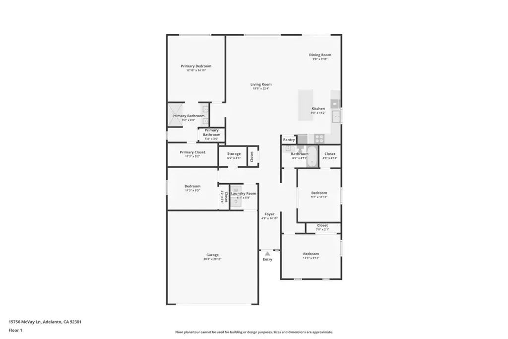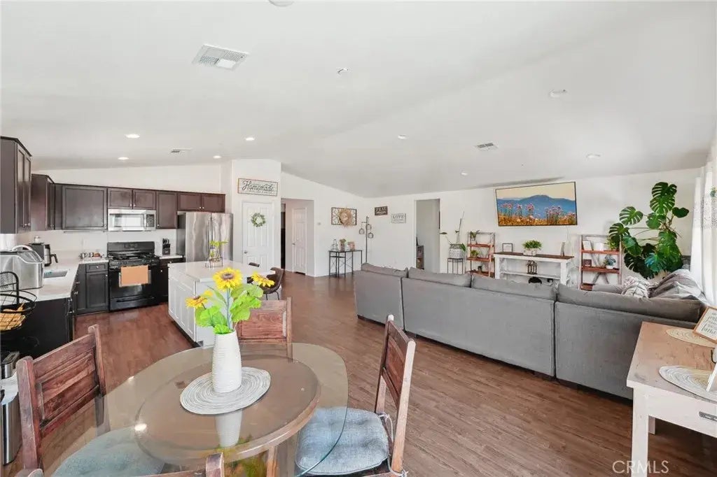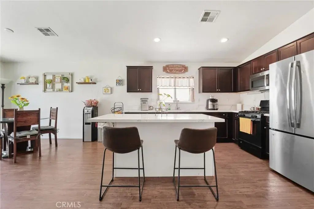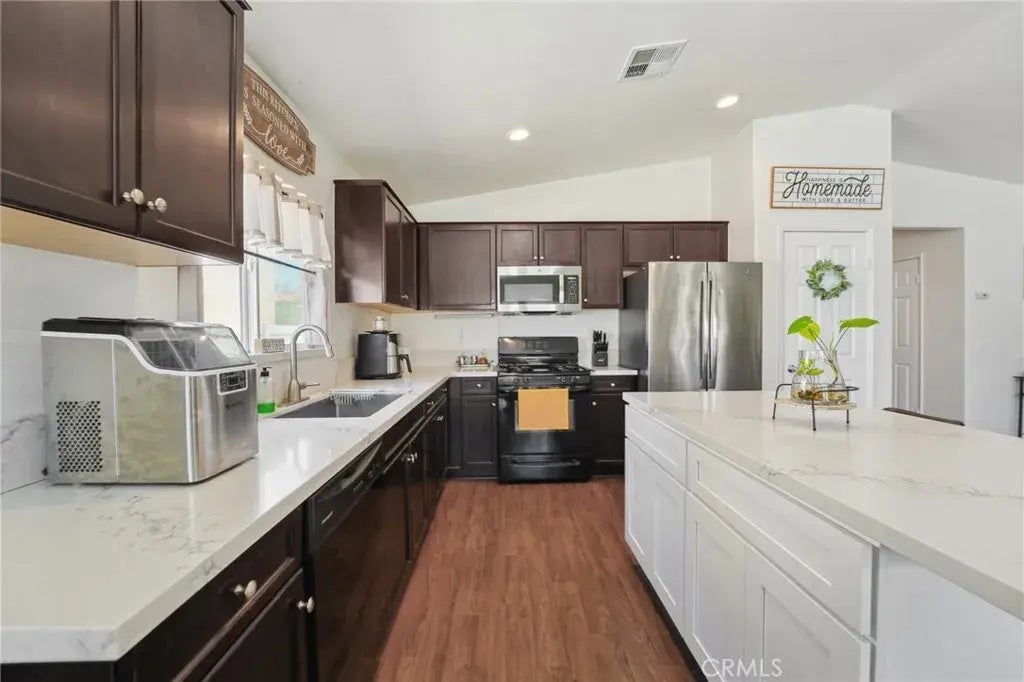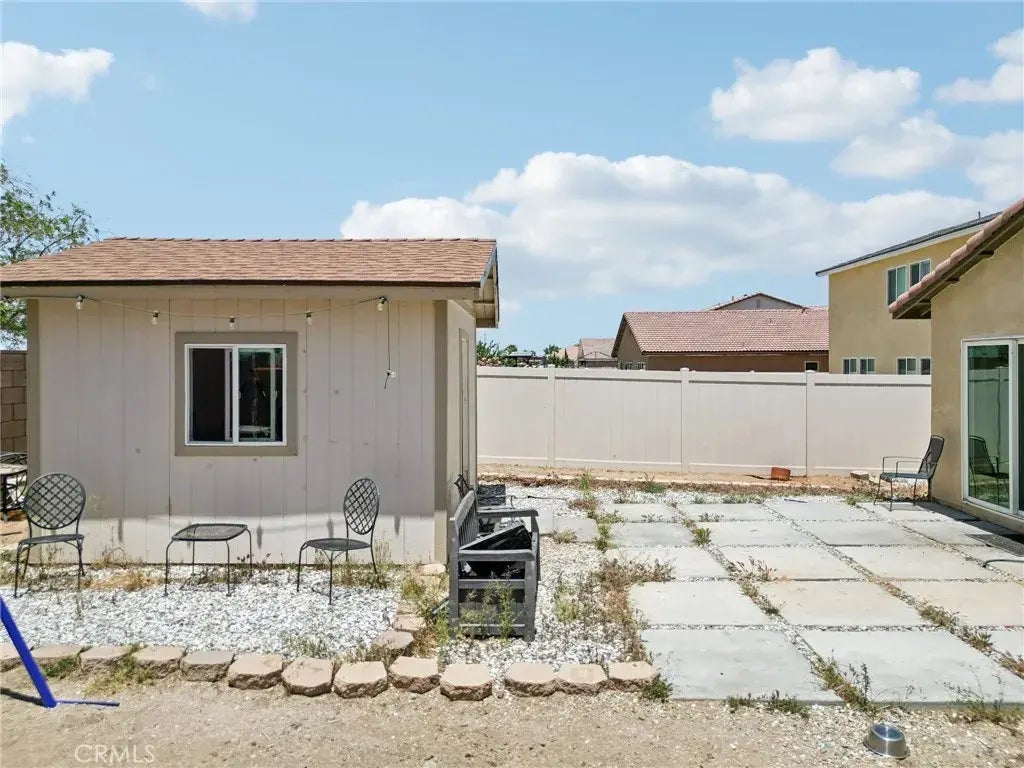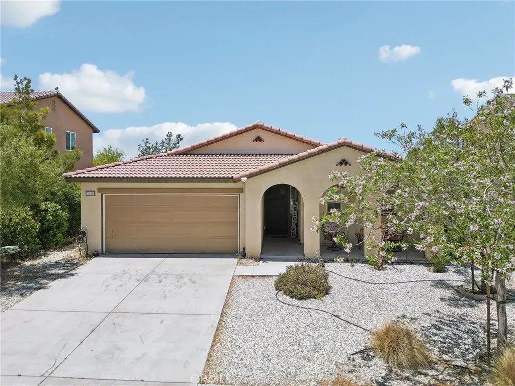 Upgraded & Ready to Impress 4-Bedroom Gem with a Custom Kitchen Island! Welcome to 15756 McVay Lane, a beautifully maintained DR Horton home built in 2017, located in the thriving community of South Adelanto. This spacious 4-bedroom, 2-bathroom home offers 1,892 square feet of thoughtfully designed living space with an open-concept layout, high ceilings, and a wide entry hallway that leads into a light-filled great room. FIRE SPRINKLER SYSTEM LOCATED INSIDE THE HOME! HOME ALSO COMES WITH A TANKLESS WATER HEATER! The kitchen has been enhanced with a newly added island, providing additional prep space and seatingperfect for casual dining and entertaining. It also features a full walk-in pantry, modern cabinetry, and matching stainless steel appliances, including a stove, dishwasher, and refrigerator. The flexible floor plan includes a fourth bedroom with gorgeous French doors that can also function as a den, office, or guest space. The private primary suite offers a spacious walk-in closet and an en-suite bath with dual sinks and a stand-up shower. A separate laundry room is conveniently located near the two-car garage and includes an oversized hallway storage closet. Outside, enjoy a well-maintained backyard with custom paver patio, block wall fencing, and vinyl side fencingideal for outdoor gatherings. The front and back yards are professionally landscaped for low maintenance and great curb appeal. The home is solar-ready, offering future energy efficiency. Located just minutes from Highway 395, the 15 Freeway, local schools, and shopping centers, this move-in-ready home c