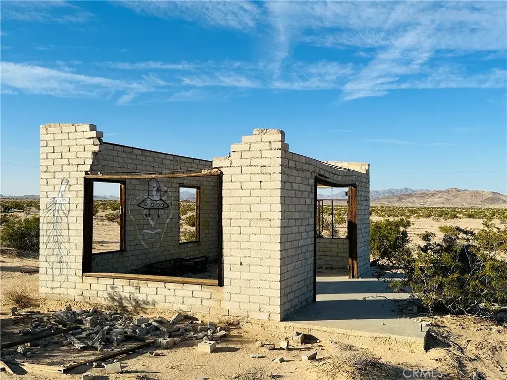 5 acres in rural Wonder Valley! Unique block cabin walls on a slab. Panoramic views across the open desert to mountains in the distance. Power in the area. Easy access - close to paved Pinto Mountain Road. Property does not have an assigned address - for listing purposes only. 15 minutes from Joshua Tree National Park entrance in 29 Palms. GPS: (34.1736781, -115.9678156) APN: 0626-021-26-0000.