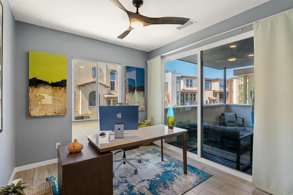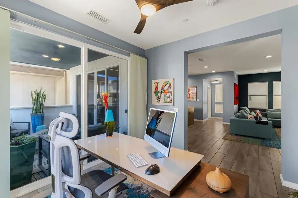 Rare Opportunity in Civita | Detached Modern Luxury in Mission Valley Modern Elegance Meets Sustainable Living in Civita. Welcome to 8355 Summit Wayone of the rare, fully detached homes in Civita, Mission Valleys premier master-planned community. This contemporary residence blends European-inspired architecture with seamless indoor-outdoor living, featuring a custom-landscaped private yard and an expansive view terrace perfect for both entertaining and quiet evenings by the fire. Spanning 2,183 square feet across three thoughtfully designed levels, the home offers 3 spacious bedrooms, 3.5 bathrooms, a dedicated home office, a versatile flex room, and an additional workspace ideal for dual remote professionals or creatives. Sustainable, cost-saving features include an owned solar energy system, a whole-home battery backup, and a 220V EV charging station in the attached garagemaking this home as efficient as it is elegant. Enjoy all the benefits of one of the lowest HOA fees in Civita, while still accessing resort-style amenities including sparkling pools, luxe cabanas, oversized spas, outdoor kitchens, a state-of-the-art fitness center, and more. With 14 acres of parks, scenic trails, and dog-friendly green spaces just outside your doorand San Diegos best beaches, dining, and shopping minutes awaythis is modern luxury reimagined for the way you live today.