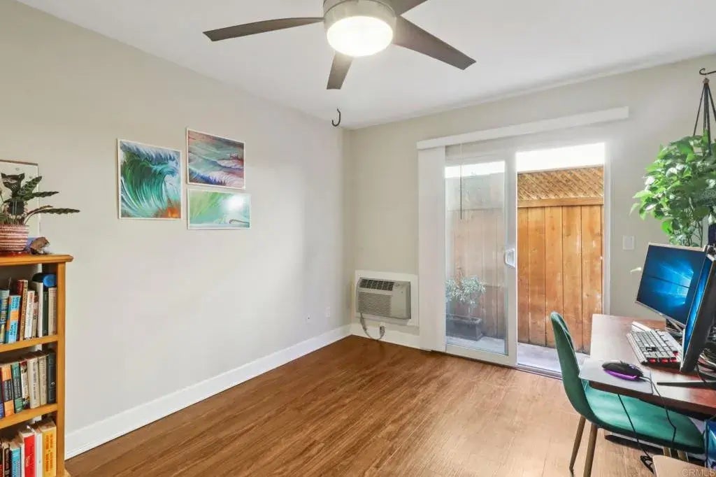 Indulge in vibrant North Park living from this rarely available ground-floor corner condo quietly tucked away within a gated 10 unit complex and perfectly positioned just steps from shopping, dining, and entertainment. The striking and light-filled layout affords a 2-bedroom, 2-bath residence designed with abundant windows, tranquil courtyard, and an open flow that combines everyday comfort with urban convenience. Step inside and admire the beautiful flooring, bright natural light, and thoughtful upgrades throughout. The kitchen is equipped with granite counters, ample cabinetry with under-cabinet lighting, and stainless steel appliances including a new refrigerator seamlessly connecting to the dining and living areas. The serene primary suite boasts patio access, a spacious walk-in closet, and an ensuite bathroom, while a secondary bedroom and full bath create flexibility for guests or a home office. Both bedrooms feature ceiling fans, and the home is complete with in-unit laundry for added convenience. Additional highlights include assigned parking, low HOA fee and strong reserves, and a charming courtyard setting that enhances the homes unique architectural feel. Homeowners Association fee covers water, trash, landscape and building maintenance. All this in one of San Diegos most desirable neighborhoods North Park where walkability meets style and convenience. Just outside your door youll find iconic landmarks like the newly reimagined Lafayette Hotel, vibrant coffee shops, craft breweries, boutique fitness studios, and some of the citys best dining destinations. Wit