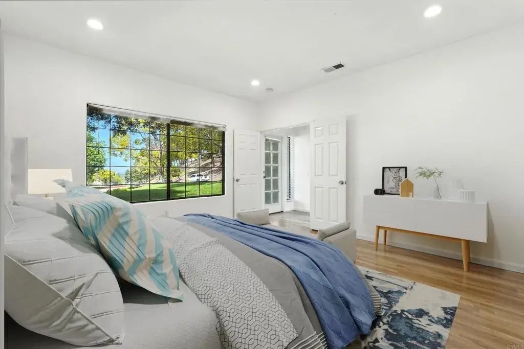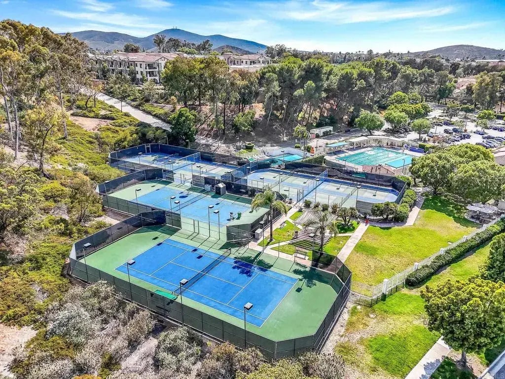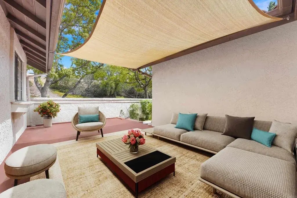 Beautifully updated end unit townhome in the desirable Bernardo Heights community with resort-style amenities. Enter through the gated front courtyard into the main level featuring vaulted ceilings, open living & dining area with fireplace, and French doors leading to the balcony. The kitchen boasts quartz countertops, white shaker cabinetry, stainless appliances, breakfast bar, and an eat-in dining nook. The spacious primary bedroom offers green belt views, two walk-in closets and an ensuite bath with dual sinks and subway tile shower. Other highlights include freshly painted interiors, new blinds, central A/C, dedicated laundry room, attached two-car garage, and below-ground storage with potential to convert to additional square footage. Multiple outdoor spaces, including an expansive fenced front courtyard and a covered back patio connected to a sizeable grassy area, providing the feeling of a full backyard. Community amenities include a pool & spa as well as access to both the Bernardo Heights Clubhouse and Lucido Park featuring additional pools & spa, wading pool, fitness center, tennis & pickleball courts, sports fields, playgrounds, and more. HOA dues cover water, cable, internet, sewer, trash, and common area maintenance. Located within the top-rated Poway Unified School District, and close to shopping, dining, golf, and freeway access. Lake Hodges, Black Mountain, and hiking trails nearby, and only 20 minutes to the beach.