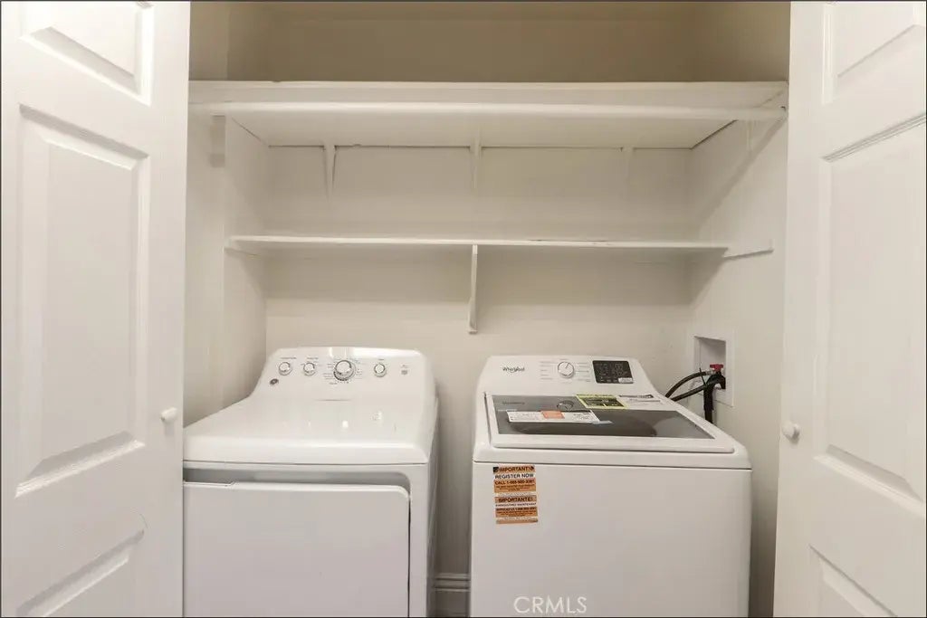 AWESOME LOCATION OVERLOOKING LUSH GREENBELTS, UPGRADES THROUGHOUT AND HIGHLY SOUGHT AFTER TWO-STORY TOWNHOUSE STYLE FLOOR PLAN WITH NO ONE ABOVE OR BELOW! Large living and dining room with fireplace with designer style tile surround and sliding doors leading to the large rear patio with storage closet. Gourmet kitchen with upgraded cabinets, stone countertops, newer and upgraded stainless steel appliances and greenhouse window. Main floor also features a powder room featuring a vanity with stone countertop and upgraded fixtures and full size laundry area with washer (brand new) and dryer. Second story featuring a large master bedroom with vaulted ceilings, wall-to-wall closet with upgraded closet organizers and sliding doors leading to a private deck with views of lush greenbelts directly behind the large rear patio. Large 2nd bedroom and upgraded full bathroom with tub and shower, upgraded vanity and fixtures. Repiped with PEX in 2024, upgraded LVP flooring, newer and upgraded heater, added/upgraded ceiling fan and light fixtures and more! All this plus community pool and spa, excellent proximity to nearby shopping, easy access to the toll road (73), freeway (off Alicia and La Paz) and beach access, highly sought after schools, Aliso Viejo Town Center with shops, restaurants and entertainment and nearby hiking, biking and nature trails!