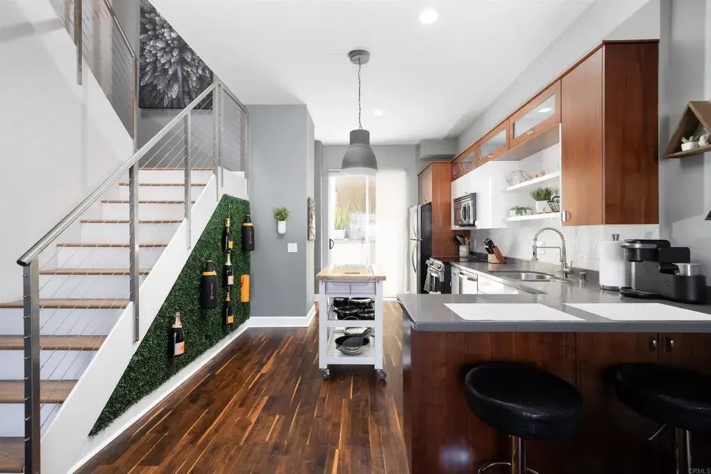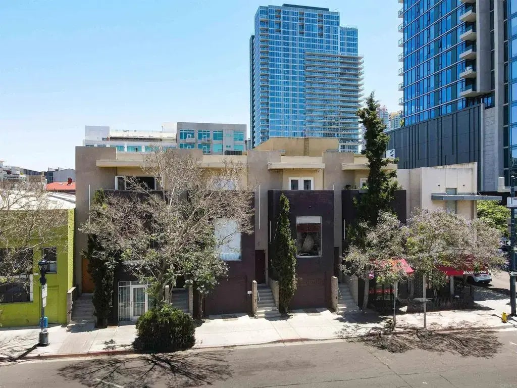 Welcome to Moto Villas, an architecturally stunning loft community designed by renowned architect Jonathan Segal, located in the vibrant East Village of Downtown San Diego. This distinctive residence blends urban sophistication with modern functionality offering outstanding value for both homeowners and savvy investors. Enjoy the low monthly HOA dues and unbeatable proximity to some of the city's most iconic attractions, including Petco Park, all within walking distance. Positioned in one of San Diegos most dynamic neighborhoods, youll be immersed in a lifestyle rich with dining, entertainment, and cultural experiences. Step inside to discover a multi-level open floor plan that exudes contemporary elegance and livable comfort. The home features three private outdoor patios ideal for entertaining, relaxing, or taking in the city energy. A private street-level entrance ensures both privacy and easy access. Meticulously updated throughout, the kitchen and bathrooms boast premium finishes and top-tier appliances. Soaring ceilings and a spacious, open layout evoke the feel of a modern loft, while offering the warmth and functionality of a townhome. Additional conveniences include a dedicated garage parking space, enhancing both ease and security. Whether youre searching for a stylish primary residence or a high-performing investment property in an A+ location, this home delivers on all fronts. Schedule your private showing today and experience the best of Downtown San Diego living.