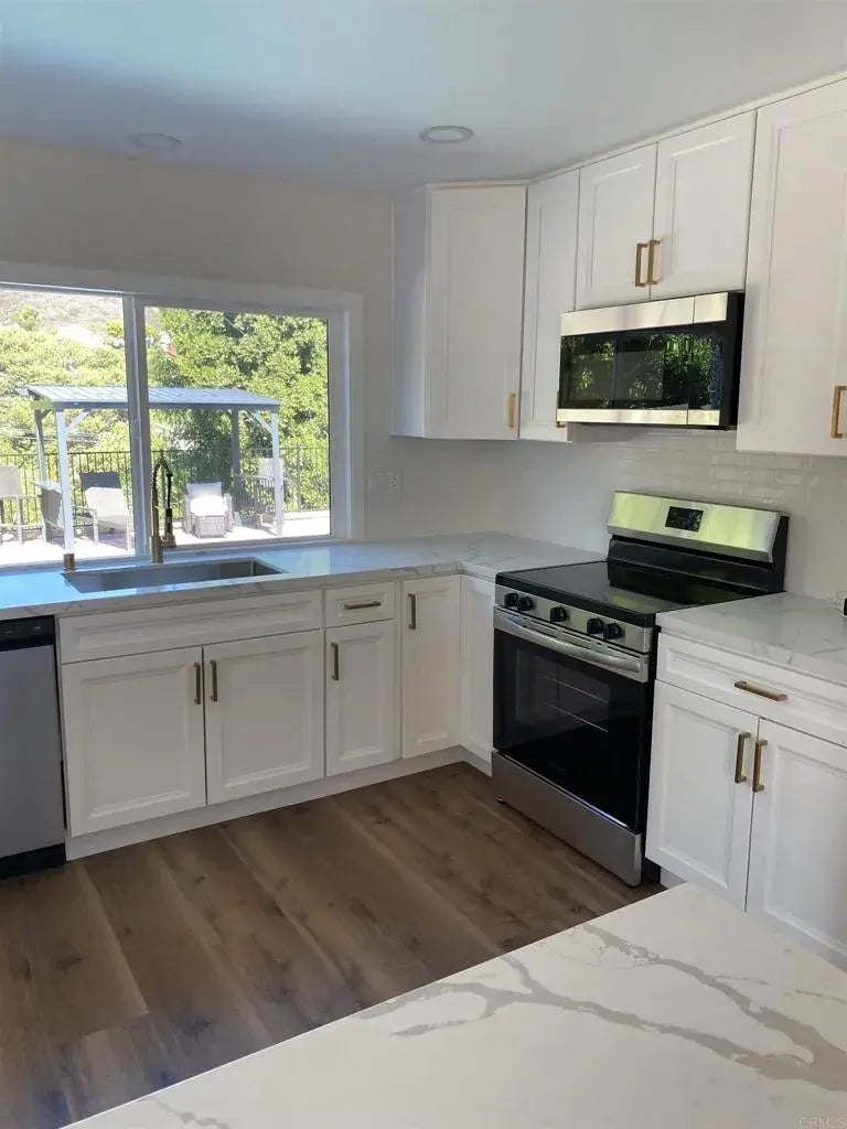 Incredible opportunity to own this gorgeous, contemporary fully updated home! It features 4 bedrooms, 3 full baths, & open concept. The sweeping canyon view is breathtaking. Add new landscaping, pergola & luxurious pool upgrades. Inside features a masterful remodel for multigenerational living or elevated hosting. Large lot extends past the back fence which could be a playground, firepit or more. Situated in the highly desired Poway school district. This is a beautiful home!