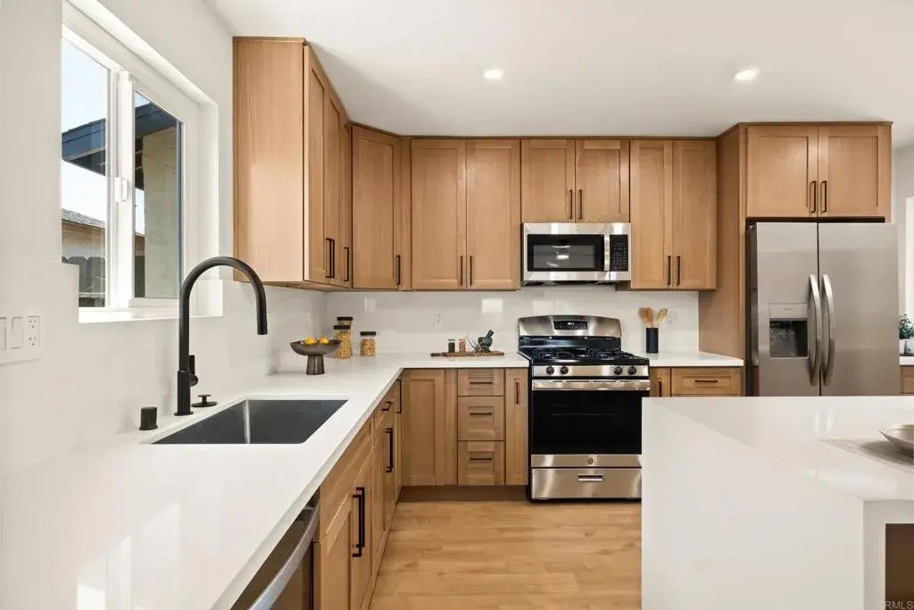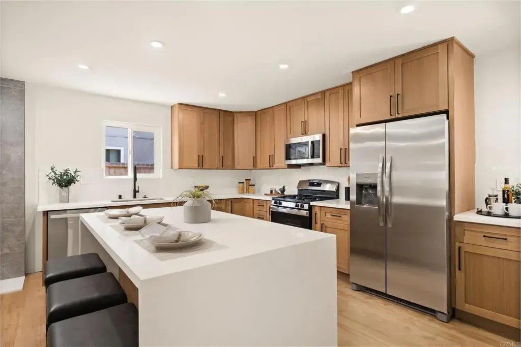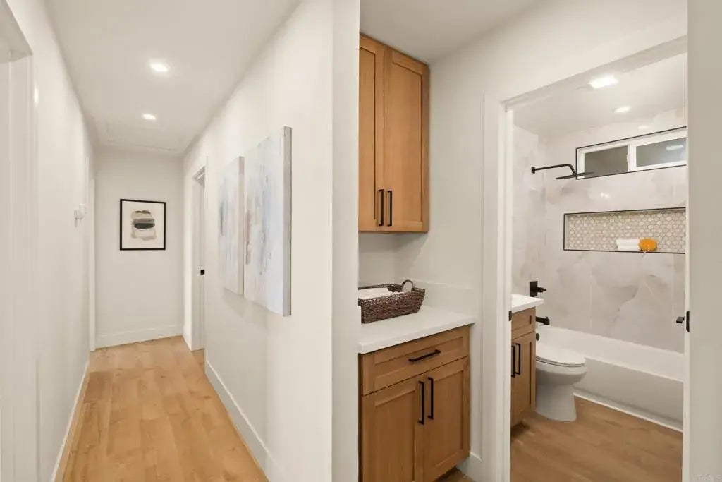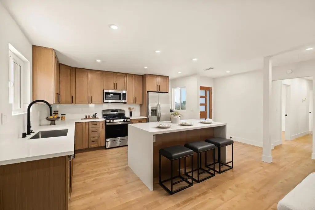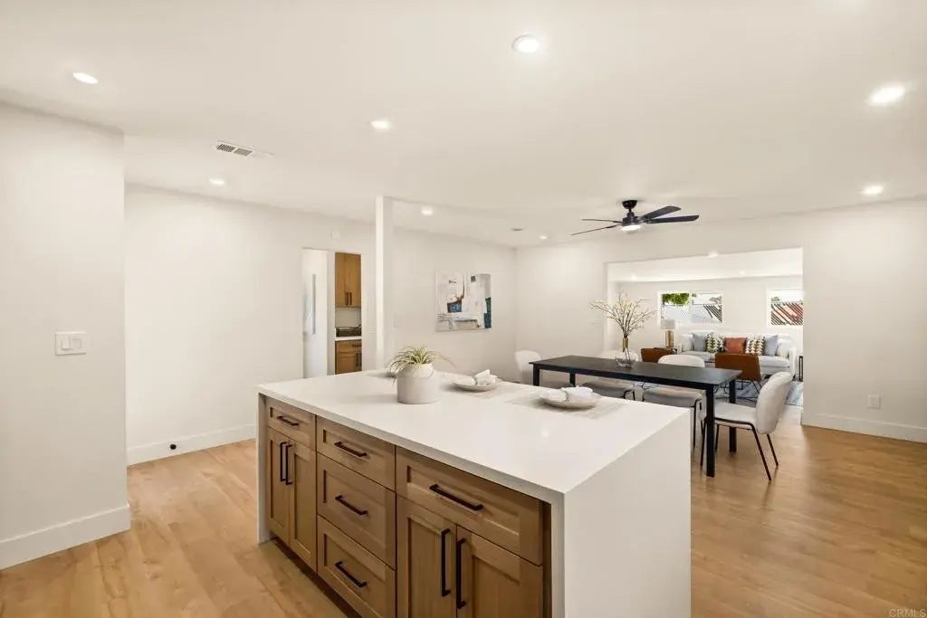 Located in the vibrant heart of San Diego, just minutes from local shops, parks, dining, and the nearby Navy base, this stunning, fully remodeled corner-lot home offers the perfect blend of style, comfort, and convenience. Featuring 3 bedrooms and 2 bathrooms, the open-concept layout is thoughtfully designed for modern living. At the center of the home, a designer kitchen showcases sleek finishes, custom cabinetry, and a striking waterfall island that serves as both a statement piece and a functional gathering space. Natural light fills the interiors, highlighting new flooring, contemporary fixtures, and refined details throughout. Enjoy a spacious primary suite, beautifully updated bathrooms, and a private outdoor area ideal for relaxing or entertaining. This move-in-ready gem delivers the best of San Diego living in a sought-after neighborhood.