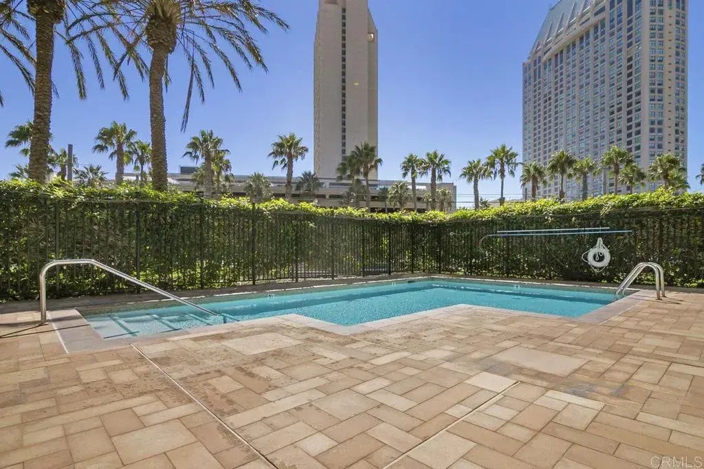 CityFront Terrace Residence 101 - Truly, one of the finest townhomes in Downtown San Diego. This stunning home situated on the prominent corner looks out to the elegant sculpture/formal maze gardens of the MLK Promenade. In this prime location, this beautiful three-bedroom residence (Note: optional #3 has sliding doors and is currently used as a dining room) with 3 full bath home is bright and welcoming with walls of windows and doors opening to the large wraparound terrace that features private gated access off the park. This exceptional home offers a graceful floor plan with spacious rooms and elegant entertainment space within the step down living room, gorgeous park and tree lined views from all rooms. The primary bedroom is located upstairs, with its own stunning spa like en-suite along with another bath and bedroom. Enjoy cooking in your chefs kitchen with luxury custom cabinetry, granite counters and top of the line stainless appliances. CityFront Terrace boasts over two acres of exquisitely landscaped gardens. Within this Downtown landmark is the award-winning Urban Canyon, a secluded garden overflowing with oak trees, lush greenery, rose bushes, and accented by a 90-foot long waterfall monument. CityFront Terrace features resort-style amenities including two community swimming pools, spa, outdoor kitchen and barbecue area, plus an entertainment suite complete with full kitchen and state-of-the-art media electronics the perfect place for large scale entertaining and parties. The building features a 3,000 square foot fitness facility that is the finest community fitn