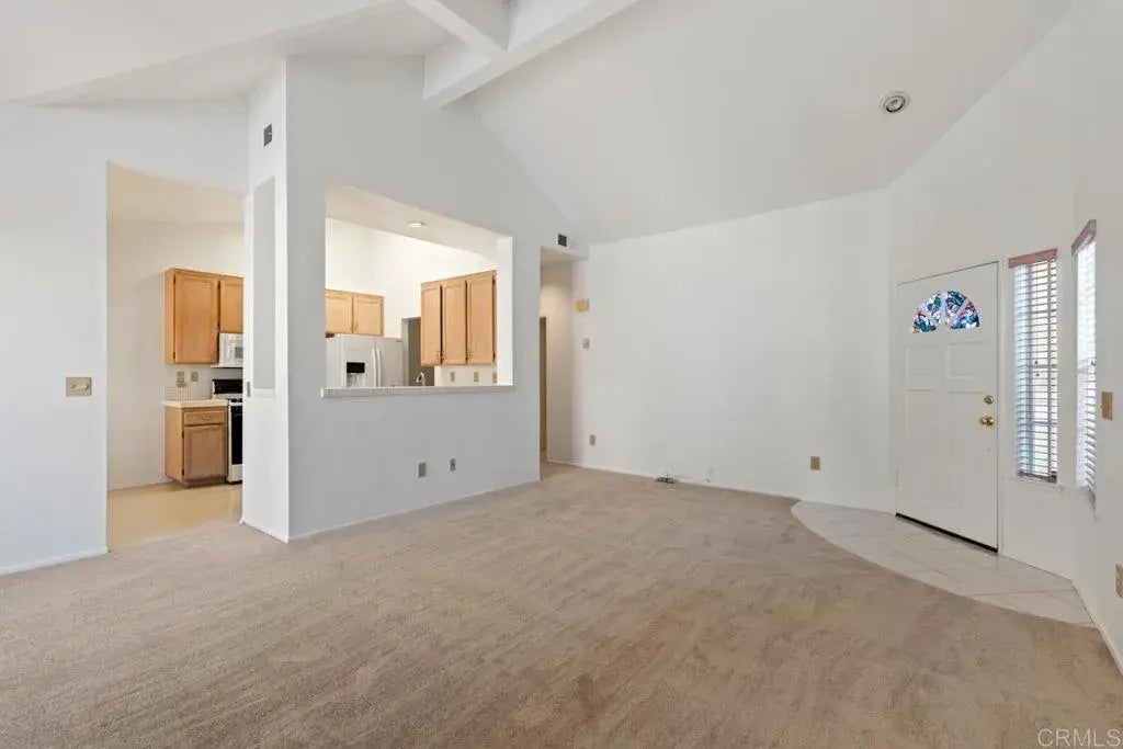 Welcome to your peaceful retreat in the heart of Tierrasanta! This rarely available upper-level 2 bed, 2 bath condo offers 1,226 sq ft of open-concept living nestled in a secluded and beautifully landscaped community. Vaulted ceilings and large windows create an airy, light-filled ambiance throughout the home, while the private balcony offers a tranquil space to relax under the canopy of mature trees. Step inside to a spacious living room with a gas fireplace and direct access to the private patioideal for morning coffee or evening wine. The kitchen offers abundant cabinet space and a functional layout, with an adjacent laundry room and storage. The oversized primary suite includes a walk-in closet and an en-suite bathroom. A private 1-car garage with direct access adds rare convenience and storage. Additional highlights include: newer carpet, abundant storage, well-maintained community pool and spa, and a serene natural setting just moments from the Mission Trails trailhead. Ideally located near the 52 freeway for easy commuting, and a short drive to shopping, dining, and all that San Diego has to offer. This Tierrasanta gem is perfect for first-time buyers, military, or anyone seeking a low-maintenance, lock-and-leave lifestyle in a sought-after neighborhood.
