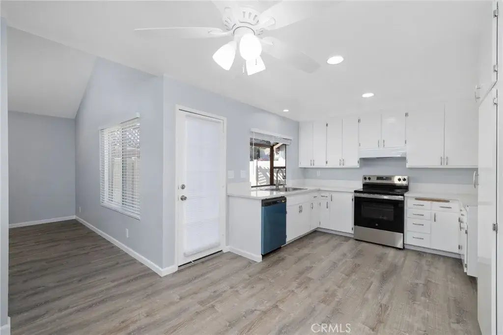 Welcome to this spacious single level 2-bedroom, 2-bathroom condo offering 1,080 sq ft and attached 2 car garage with direct access, and large private backyard. Step inside to discover a grand eat-in kitchen with stunning cabinetry, all-new stainless-steel appliances, and canned lightingperfect for entertaining or everyday comfort. The spacious layout features vaulted ceiling, vinyl flooring throughout, indoor laundry, and a freshly painted interior that feels bright and inviting. Enjoy outdoor relaxation on your private back patio or take advantage of the rare 2-car enclosed garage plus guest parking. Modern features have been added including a brand-new HVAC system, dual pane windows, and modern blinds for added comfort and privacy. Conveniently located near top shops, restaurants, and major highways, this turnkey home blends comfort, style, and accessibility. A must-see gem!