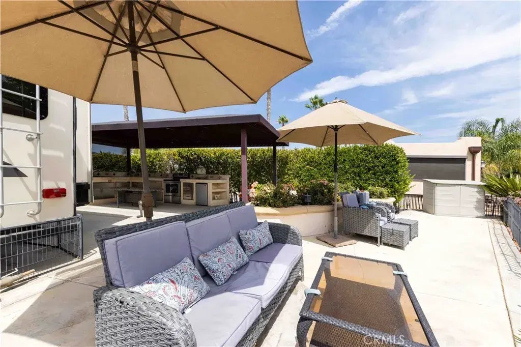 Gorgeous Water and Golf Views with full kitchen... Private BBQ area, Full kitchen with Dish Washer, Oven/Stove, Fridge and lots of storage. Outdoor area has privacy hedges, Fantastic Waterfront with overview of Golf Course, with outdoor lounging area. 5th Wheel also for Sale..... $145,000 Pkg Deal possible.. Looking for an RV Resort lot with space and privacy then come check out this perfect location nestled among the foothills of Palomar Mountain, minutes from Temecula Wine Country as well as a convenient location to Palm Springs in just under an hour, 1.5 hrs to San Diego and 1 hr to the beach in Oceanside. Rancho California RV Resort provides amenities such as a 14 hole Executive PAR 3 Golf Course (no fees for owners), 5 Pools/Jacuzzis, Tennis courts, Pickleball courts, Dog park, Club house, hiking trails, Horseshoe lawn and onsite grocery market. The resort is guard gated with no age restrictions. Monthly HOA fee includes use of the golf course, amenities, trash pickup at lot, water/sewer and common area maintenance. If you are considering a premier Southern California RV destination, don't miss out on visiting Rancho California RV Resort - Financing Available, schedule a showing