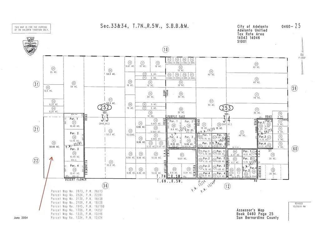 Discover the expansive potential of this 56.66-acre parcel located in the growing High Desert community of Adelanto, California. Situated within San Bernardino County, this property is zoned Rural Living (RL-5), allowing for a wide variety of uses including residential development, agricultural operations, equestrian facilities, and limited commercial uses, subject to county approval. The RL-5 zoning designation permits a minimum lot size of 5 acres per dwelling unit, making this parcel ideal for a low-density residential subdivision, ranchette-style estates, or a private retreat with ample room for recreation and future expansion. The property's size and layout also offer excellent potential for investors, developers, or individuals seeking open space and long-term value in a fast-developing region. Located near established communities and with easy access to Highway 395 and Interstate 15, the property benefits from proximity to shopping, schools, and essential services while still providing the peace and privacy of rural living. This area of Adelanto has seen increased interest due to its affordability, business-friendly climate, and ongoing infrastructure improvements. Whether you are looking to build now or invest for the future, this large rural parcel offers flexibility, space, and opportunity in one of Southern California's most promising desert markets.